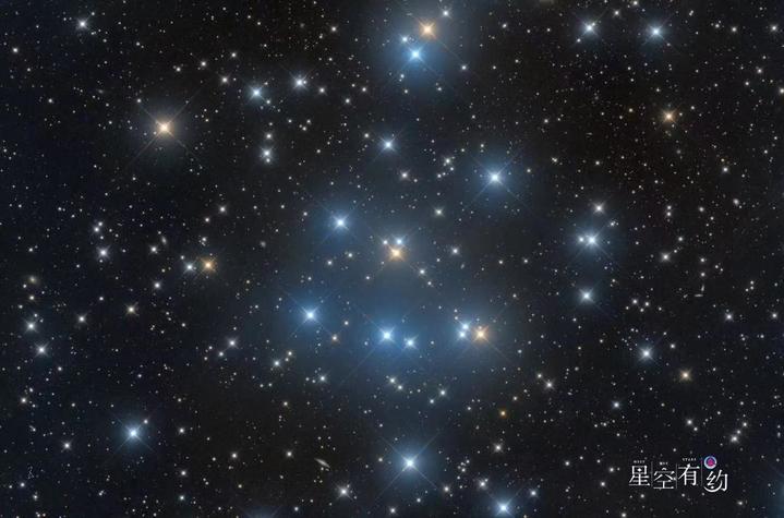 蜂巢星团因其密集的星点排列成类似蜂巢的形状而得名,在梅西耶星表被命名为M44,它是一个疏散星团,也是距离太阳系较近的星团,位于巨蟹座方向。
