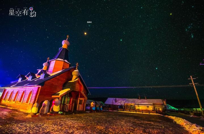 这是2018年2月3日在黑龙江漠河北红村拍摄的“红月亮”与蜂巢星团。(星空摄影师杨勇 摄)