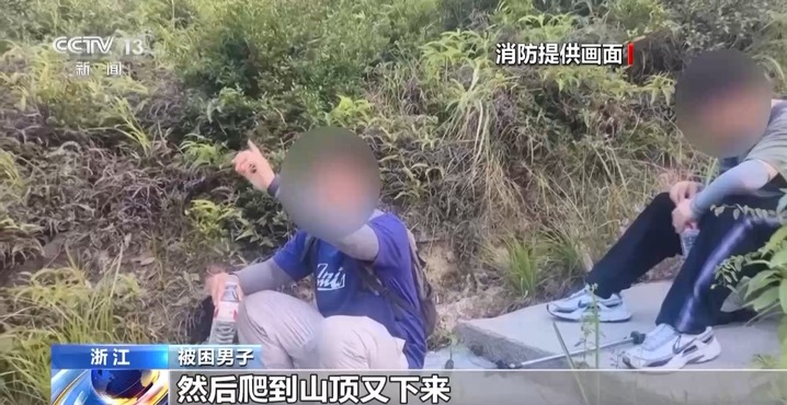 被困男子:在那个灌木丛里面一直往山上爬,爬到山顶又下来,然后又上去,体力消耗很大。