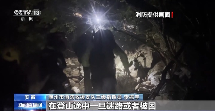 安徽省滁州市消防救援支队三级指挥员 李振宇:在登山途中因为不熟悉线路,脱离大部队,行前准备不充分,以及对自身情况、行程安排和天气情况不了解等因素,都极易发生迷路的风险。而行走在斜滑的山径,湿滑的石面、泥路,也有可能使人滑倒受伤。
