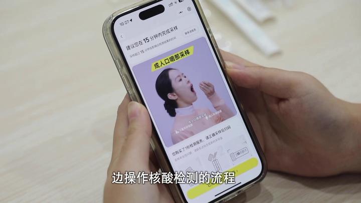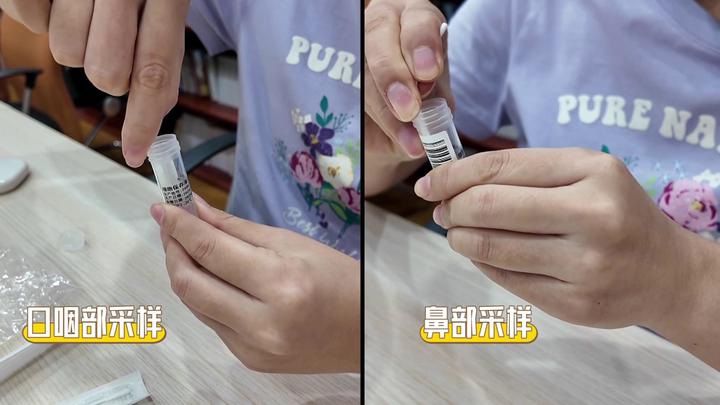 采样结束后,将口咽拭子和鼻拭子放进保存液,手机扫码录入信息,放进袋子,再放进标本运输袋,最后把标本运输袋放进盒子里,用双面胶封好口交给外卖小哥即可。