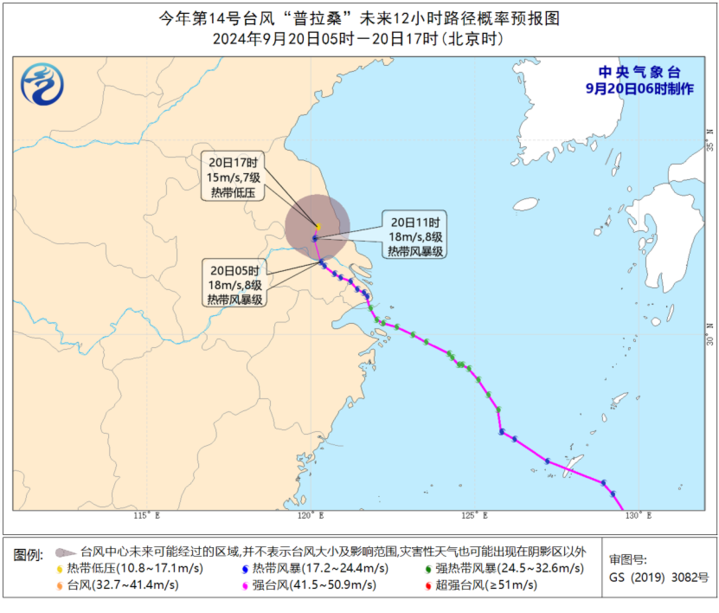 今年第14号台风“普拉桑”(热带风暴级)今天05时位于江苏省江阴市境内,就是北纬31.9度、东经120.3度,中心附近最大风力有8级(18米/秒),中心最低气压为1000百帕,目前以每小时10公里左右的速度向偏北方向移动,强度逐渐减弱。