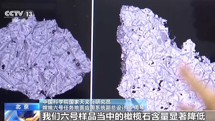 中国科学院国家天文台研究员、嫦娥六号任务工程副总设计师 李春来:当然现在的成果实际上是一个非常初步的研究结果,但是回答了嫦娥六号样品是什么样的特性、是什么样的东西,和嫦娥五号大体上有多大的差别,进一步分析的工作我们也在进行,可能马上就会有一个基本的成果,包括它的年龄,它的岩石学、成因学,它是代表了什么样的火山活动?月球背面的物质跟月球正面的物质有多大的差别?我们是不是采集到了月球月幔的一些物质成分?这样的工作可能比较快能见分晓。
