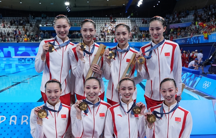 2024年8月,中国花样游泳队踏上了圆梦奥运的赛场。从出场门走出的一刹那,王赐月看到了观众席上一面面五星红旗,“那一刻我想的就是为国争光,感受到的拼劲是前所未有的”。从第一场集体技术自选开始,到集体自由自选,再到集体技巧自选,中国队一路领跑,以三项总得分996.1389分夺得花样游泳集体项目冠军,这是中国体育代表团在奥运参赛历史上的首枚花样游泳金牌。正如在决赛中设计的用腿部搭建的甲骨文“山”字一样,中国花样游泳队建队41年,从水面浮出达到顶尖,一代代花游人的青春终于在巴黎奥运的赛场上绽放!
