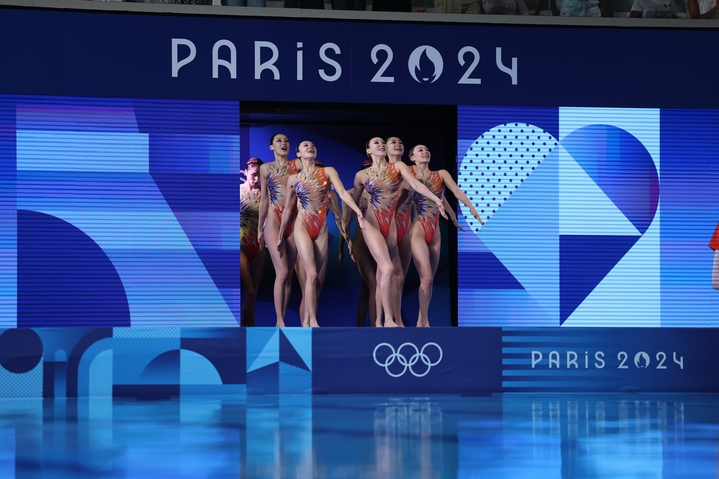 2024巴黎奥运会花样游泳集体项目中国队出场 东方IC供图