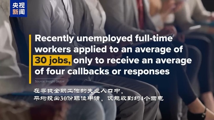 据美国人力服务公司INSIGHT GLOBAL的统计,在寻找全职工作的失业人口中,平均投出30份职位申请,仅能收到约4个回电。