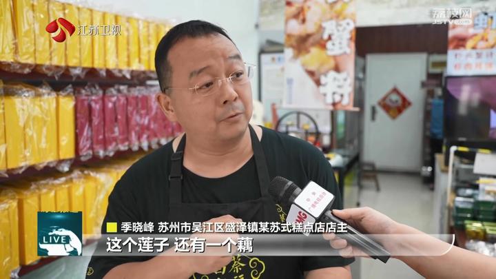 苏州市吴江区盛泽镇某苏式糕点店店主季晓峰说:“以荷花为载体,这个是莲蓬,这个是莲子,还有一个藕。这个糖我们用的是低糖的海藻糖,符合了当今年轻人低糖的口味。”