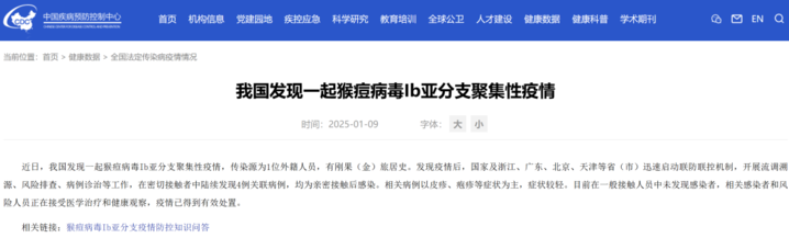 2024年8月16日,中国海关总署发布《关于防止猴痘疫情传入我国的公告》。