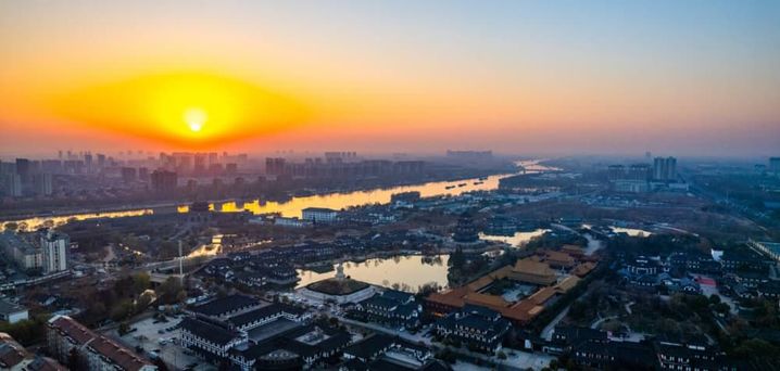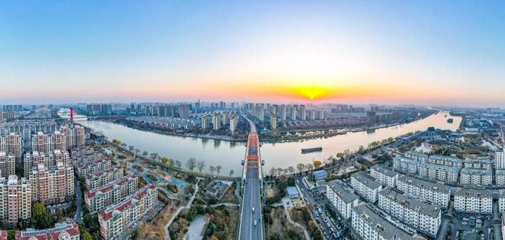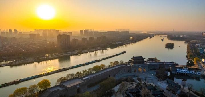 2025年1月1日,阳光照射下的运河东关口至一号桥沿线景美如画,城市也迎来了属于它的新年。(蔡亮 摄)