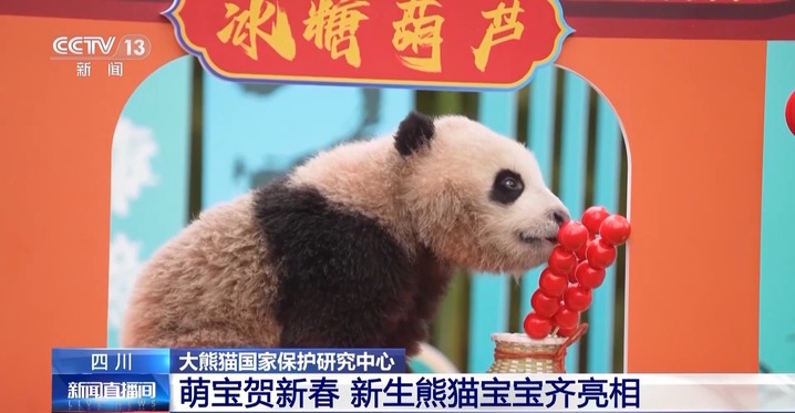 “吉祥如意 萌宝迎新”,今天(1月23日),大熊猫国家保护研究中心25只2024年出生的大熊猫幼崽在年味十足的氛围中首次亮相,向全球民众拜年,齐送新春祝福。
