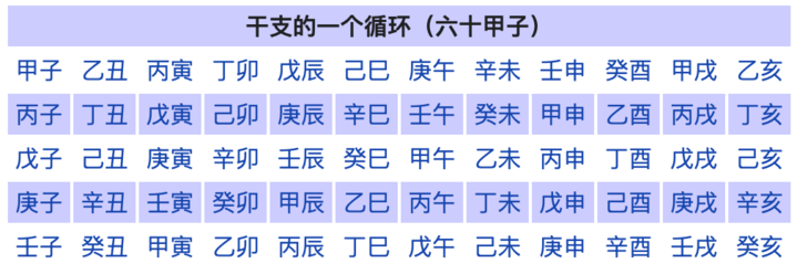 简单介绍下,干支纪年就是以十个天干——甲乙丙丁戊己庚辛壬癸,和十二个地支——子丑寅卯辰巳午未申酉戌亥,双排结合往下数,第一年是甲子,第二年是乙丑,以此类推。因为一组是10个,一组12个,60年即一循环。