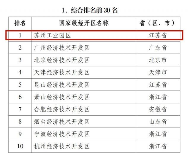 刚刚,商务部网站公布2024年国家级经济技术开发区综合发展水平考核评价结果,在229家国家级经济技术开发区中,苏州工业园区综合排名第一,成功实现“九连冠”。