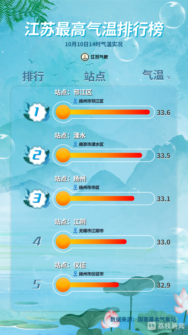 虽然已进入寒露节气,但江苏的温度是依旧“热情似火”。近期江苏最高气温更是达到32~33℃,那么这天要热到什么时候?