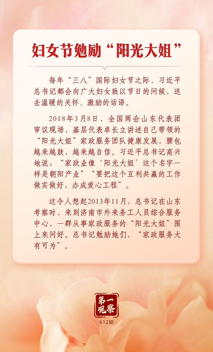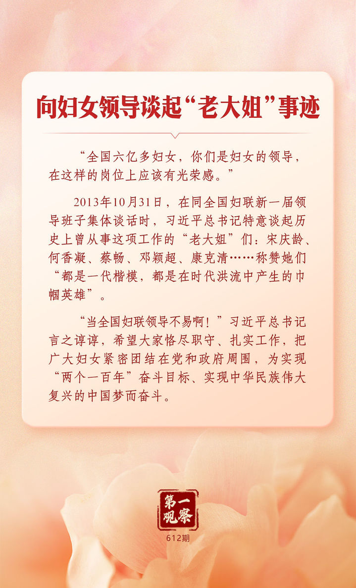 第一观察|总书记关心妇女事业发展的故事 新华社 2025-10-11 08:41 妇女是人类文明的开创者、社会进步的推动者。习近平总书记始终心系妇女事业发展。在全球妇女峰会即将召开之际,让我们一道深刻体悟这份一以贯之的牵挂与重视。