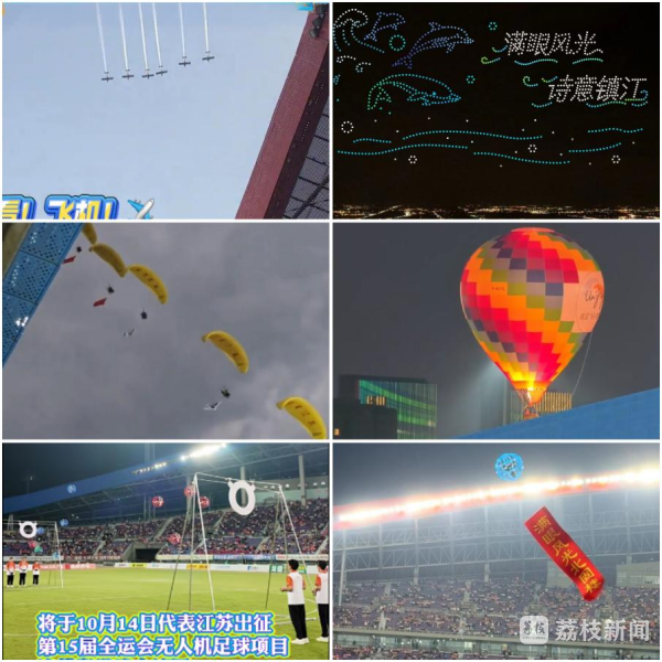 回顾2025年“苏超”镇江主场,体育会展中心上空频频上演飞翔盛宴,“低空”元素一次次刷新观众体验,展现出体育赛事的别样的魅力:从飞机编队拉烟掠过,到滑翔伞盘旋助阵;从千架无人机编织光影矩阵,到热气球浪漫升空……这种“低空+体育”的创新融合,也使其成为本年度“苏超”最受瞩目的主场IP之一。