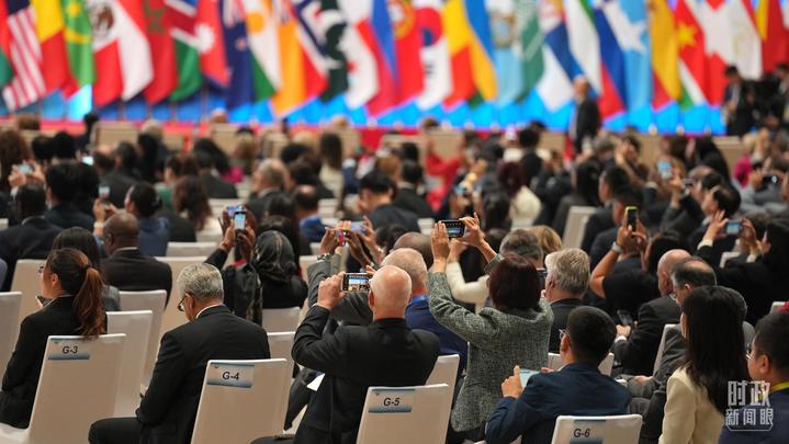 △出席全球妇女峰会开幕式的外方代表。(总台央视记者赵化拍摄)