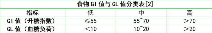血糖生成指数(GI):它是衡量食物引起餐后血糖反应的一项有效指标,反映了含50克可利用碳水化合物的食物和相当量的葡萄糖或白面包在一定时间内(一般为2小时)引起体内血糖应答水平的百分比值。