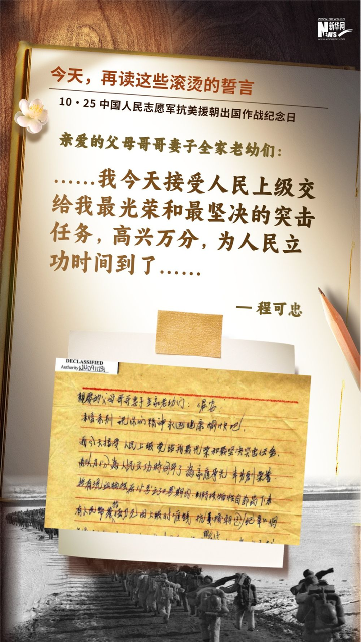 今天(10月25日)是中国人民志愿军抗美援朝出国作战纪念日,一起重温这些滚烫的誓言,感悟信仰的力量。