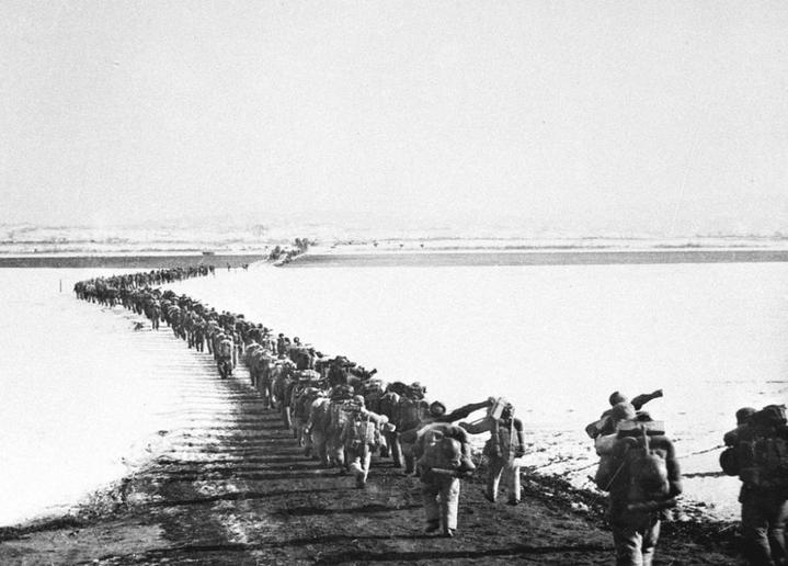 中国人民志愿军跨过鸭绿江(资料照片)。