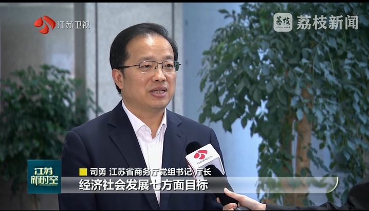 江苏省商务厅党组书记厅长司勇:“《建议》提出的‘十五五’经济社会发展七个方面目标有两个涉及商务工作,我们将深入学习贯彻全会精神,聚焦增强国内大循环内生动力和可靠性、拓展国际循环两条主线,重点做好两篇文章:一是大力提振消费,推动商品消费扩容升级,助力建设强大国内市场;二是高水平对外开放,加快打造江苏自贸试验区生物医药全产业链开放创新等一批标志性制度型开放品牌,擦亮‘投资江苏’品牌,深化‘一带一路’交汇点建设,在畅通内外循环中不断拓展国际合作空间。”
