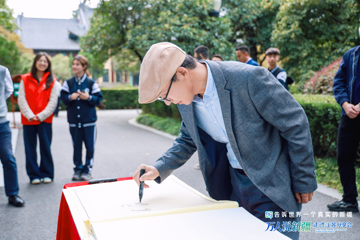 10月29日,由新疆维吾尔自治区党委网信办、江苏省委网信办联合主办的“万人说新疆”走进江苏分享会在南京师范大学随园校区举行。左宗棠五世外孙梁小进、南京大学历史学院教授张良仁、作家丁捷、江苏卫视主持人孟非、南京市博物总馆副馆长宋燕、澳大利亚籍主持人安龙等,以及一线援疆建设者、文化学者、自媒体博主等嘉宾,相会于秋日的“东方最美校园”,畅叙跨越古今东西的新疆故事。