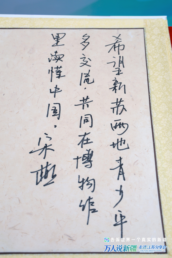 天南地北的人们相会于金陵,共叙旧缘与新程。留言册上的一笔一画,饱蘸着深情厚谊,见证着新疆与中原的又一次“双向奔赴”,在不朽的纸页间珍藏永续。我们提笔以时间为墨,将续章在前行中写就。