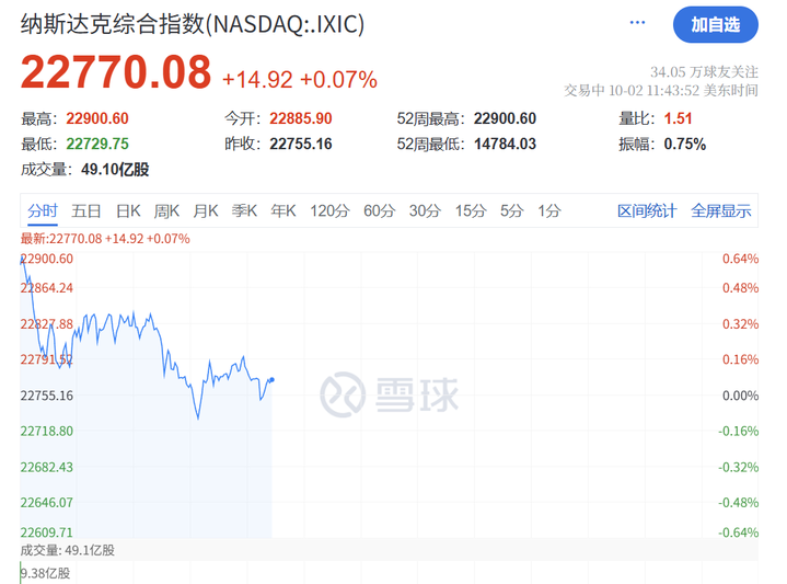 受OpenAI完成员工股权转让、估值跃升至5000亿美元、成为全球最具价值初创公司提振,纳斯达克100指数一度连创历史新高,但涨势难以为继,AI乐观情绪有所降温。