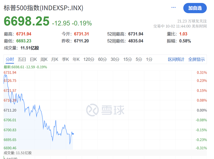 美股方面,走势跟黄金价格相似,开盘一度续创历史新高,随后高开低走,标普500指数创纪录高开后转跌。