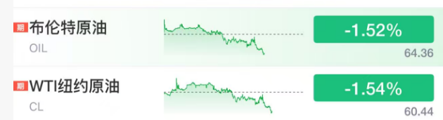 原油连跌第四天。受市场预期OPEC+将加快恢复闲置产能、全球供过于求担忧加深影响,WTI原油跌破每桶61美元,触及四个月低位。