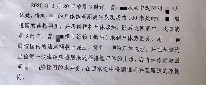 毛女士表示,她起初以为母亲外出,确认母亲失联后,她报警并求助救援队寻人。毛女士称,由于尸体掩埋地出现异味,母亲遗体于3月30日被警方发现。经法医鉴定,不排除被害人刘某某被钝器多次击打头面部导致颅脑损伤而死亡。