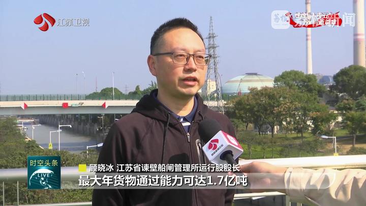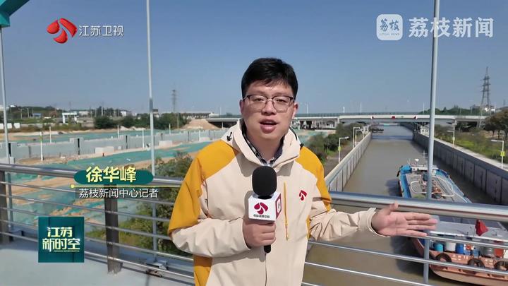 荔枝新闻中心记者徐华峰说:“这里是被称为‘江南第一闸’的谏壁船闸,是串联京杭运河江苏段苏南、苏北水域的关键通江枢纽。前不久,谏壁一线船闸扩容改造工程顺利通过交工验收,标志着这座世界最大内河单梯级船闸正式具备通航条件,可实现京杭运河江苏段2000吨级船舶的全天候畅行。”