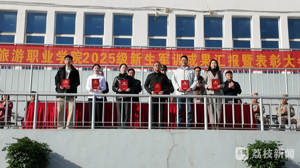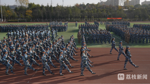 11月28日,南京旅游职业学院举行2025级新生军训成果汇报暨表彰大会,新生们集中展示了两个星期的训练成果。