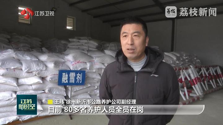 面对雨水天气带来的道路结冰,徐州新沂、盐城亭湖等地道路养护部门第一时间启动应急响应机制,在主干道、桥梁、坡道等关键节点布设了防滑料,并储备融雪剂等应急物资。