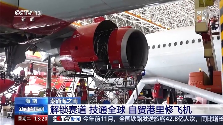 境外飞机为何要来海南自贸港进行维修?答案就在海南自贸港量身定制的政策“组合拳”:进境维修飞机免缴保证金、维修航材入区保税储备等等,一系列优惠措施降低了综合成本,缩短了维修周期。
