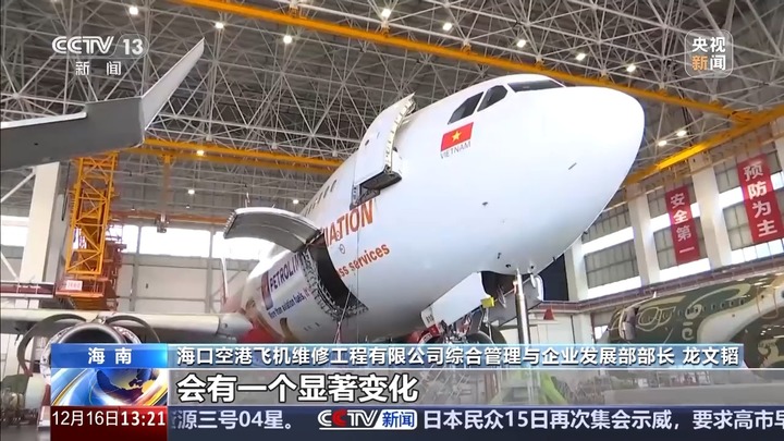 海口空港飞机维修工程有限公司综合管理与企业发展部部长 龙文韬:现在实施的是一个原辅料零关税清单,原本是一个正面清单,在清单上面的原辅料才可以免税。那么在封关以后,将是一个负面清单管理,也就是说,只要不在这个清单上的都可以免税,免税航材的覆盖面上面会有一个显著变化。