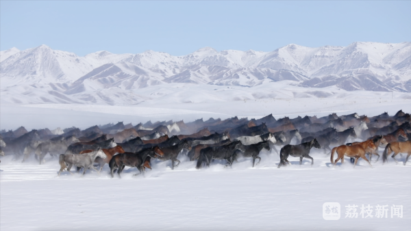 在昭苏的辽阔雪原上,最动人心魄的莫过于亲眼见证“天马踏雪”的壮丽史诗。这里有你在其他地方很难看到的景象——“天马踏雪”,成群的骏马在皑皑雪原上迎雪奔腾,鬃毛飞扬,马蹄扬起漫天雪雾,场面无比壮观。