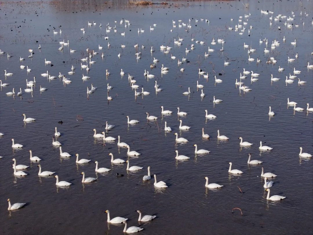 全省罕见!盐城首次发现超1400只小天鹅越冬