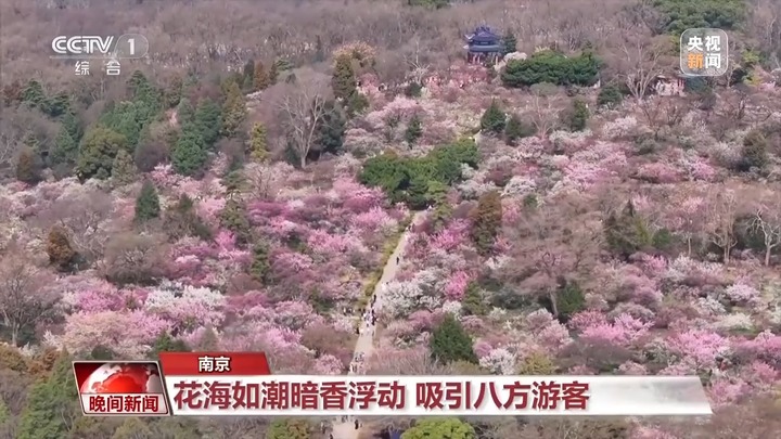 在南京,“我国四大梅园之首”的梅花山化身梅花的海洋,花海如潮,暗香浮动,吸引着无数游客前来踏青赏春。