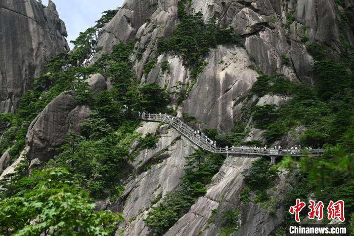 2024年7月31日,游客在黄山风景区登山游览。中新社记者 韩苏原 摄