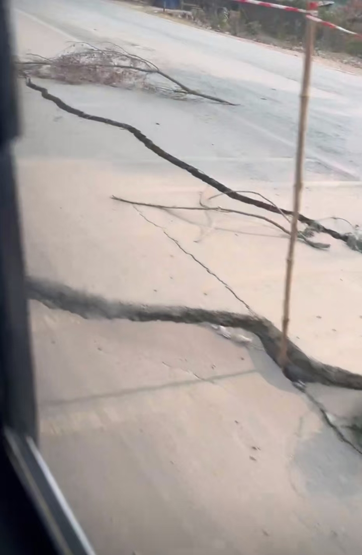 除了上述地震之外的风险,罗先生称车队行驶的小路路面也受到地震影响。“还是曼德勒到内比都这段路程,因为距离只有几百公里,很多路面受地震影响,已经开裂。我们在过一座桥的时候,属于我们这侧的桥已经断掉,我们只能走逆向车道。”开了一路夜车的罗先生表示,现在回想起来都心有余悸。