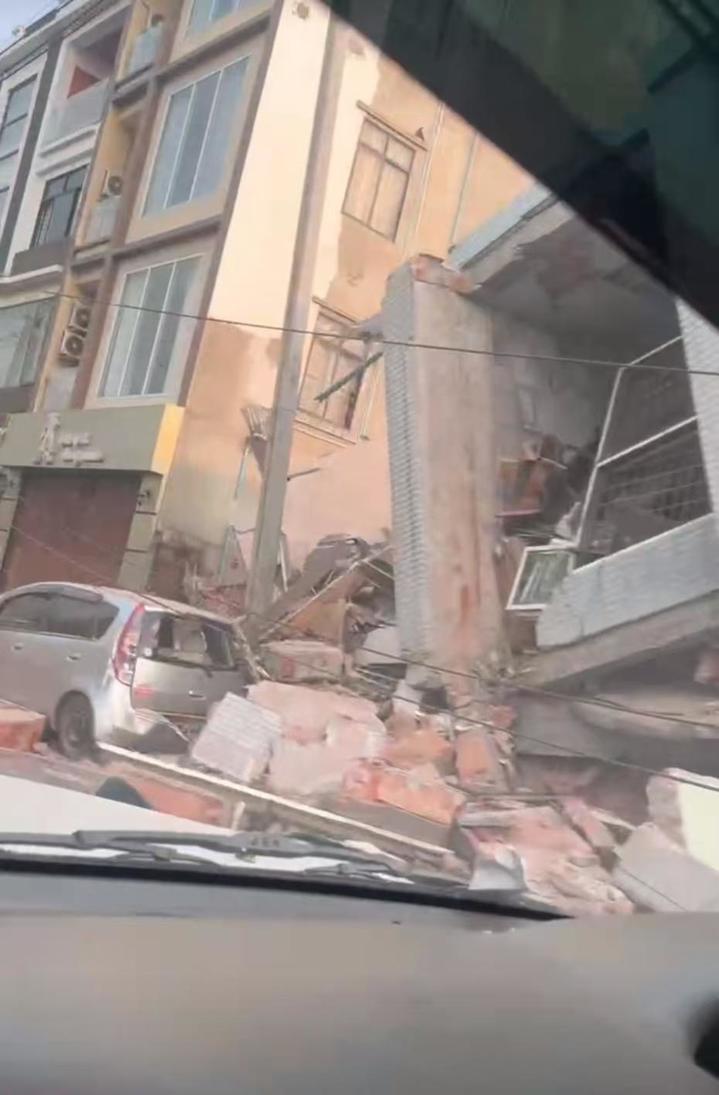 △罗先生撤离时有路面已经因地震开裂。图/受访者提供
