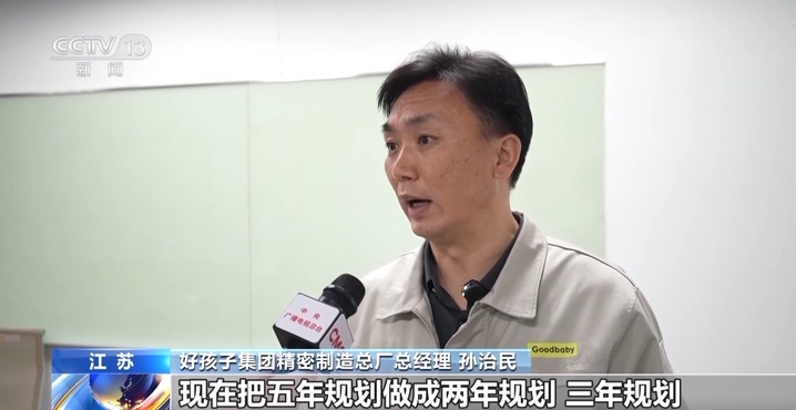 好孩子集团精密制造总厂总经理 孙治民:现在把五年规划做成两年规划、三年规划,把之前规划的内容,提到前面来做,比如说AI应用、机器人应用都加快投入。2025年我们计划,比2024年效率提升还要增长20%。