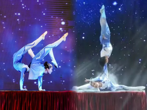 杂技男女柔术以超高柔韧性挑战折叠、缠绕等高难动作,把人体极限之美展现得淋漓尽致 。双人配合默契,力量与优雅完美融合,托举、平衡一气呵成,惊险又优雅。融入故事情节与音乐,不仅秀技巧,更传递细腻情感,带你感受力与美的交织。