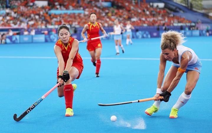 2024年8月9日,中国队员在巴黎奥运会女子曲棍球金牌赛中,最终中国队获得银牌。 新华社记者 任鹏飞 摄