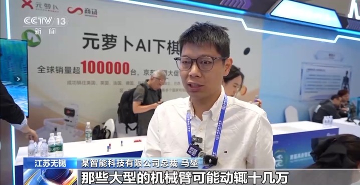 某智能科技有限公司总裁 马堃:以往大家能看到会下棋的机器人都是在科技馆,那些大型的机械臂可能动辄十几万,我们通过我们的算法技术把它变成一个小小的东西,然后把价格降到了千元级别,未来我们可能会做更多进入家庭端的机器人设备。