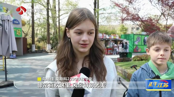 江苏台记者毕然说:“春暖花开,正是外出踏青赏花的好时节。南京迎来了一群特殊的客人——来自俄罗斯的研学旅游团,这个团队是由两名老师带领着7个孩子组成。大家带着满满的期待抵达南京后,将开启为期12天的精彩研学之旅。”