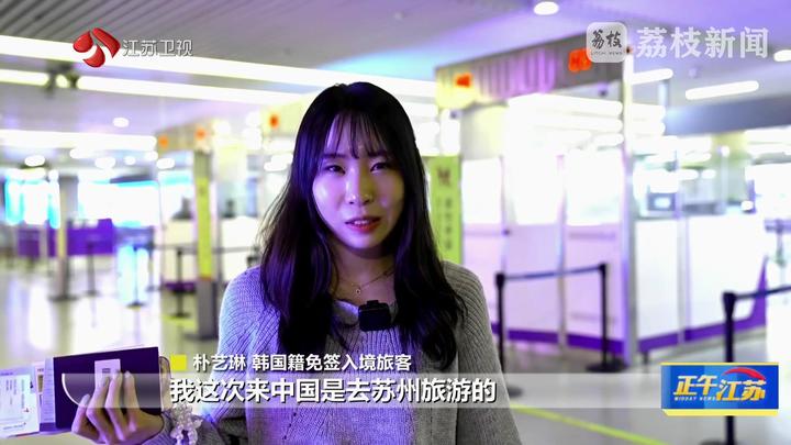 韩国籍免签入境旅客朴艺琳说:“我这次来中国是去苏州旅游的,现在不需要办签证,很方便。”