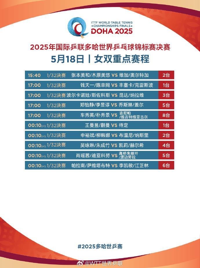 为国乒加油!多哈世乒赛今天开打 提前收好这份赛程