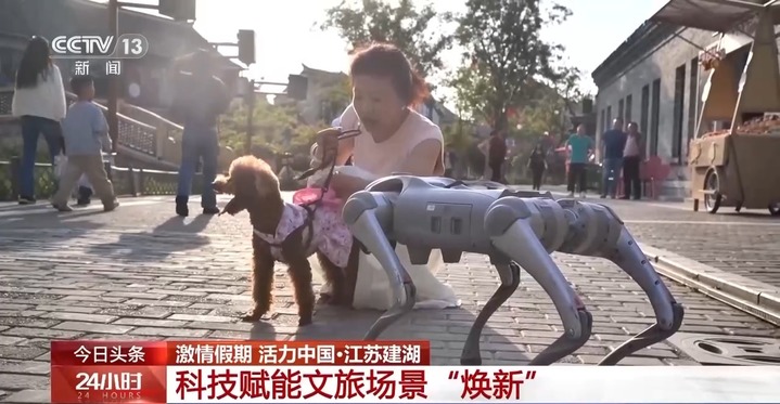 在景区里,游客不仅能邂逅智能机器人,还能偶遇智能机器狗穿梭在街头巷尾,扫码共享无人机航拍极速成片,戴上VR眼镜畅享“穿越时空之旅”,打破传统“走马观花”式游览,为广大游客提供更舒适、智慧、便捷的旅游体验。