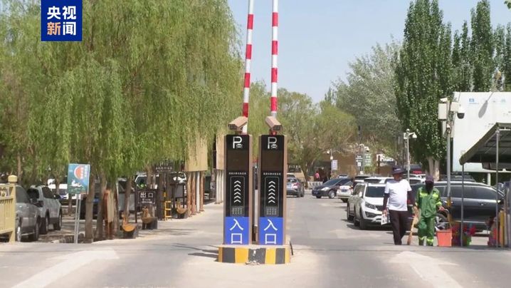 甘肃敦煌市多个停车场假期可以免费停车。在鸣沙山月牙泉景区停车场,进出口闸道杆高高抬起,迎接八方来客。